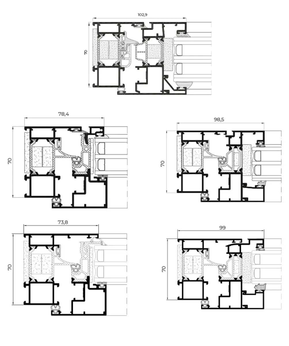 Novo sistema, que oferece uma enorme versatilidade, combinando os Sistema batente de folha oculta/folha semivisível reduzida e sistemas Folha semivisível/Folha visível, num único.
