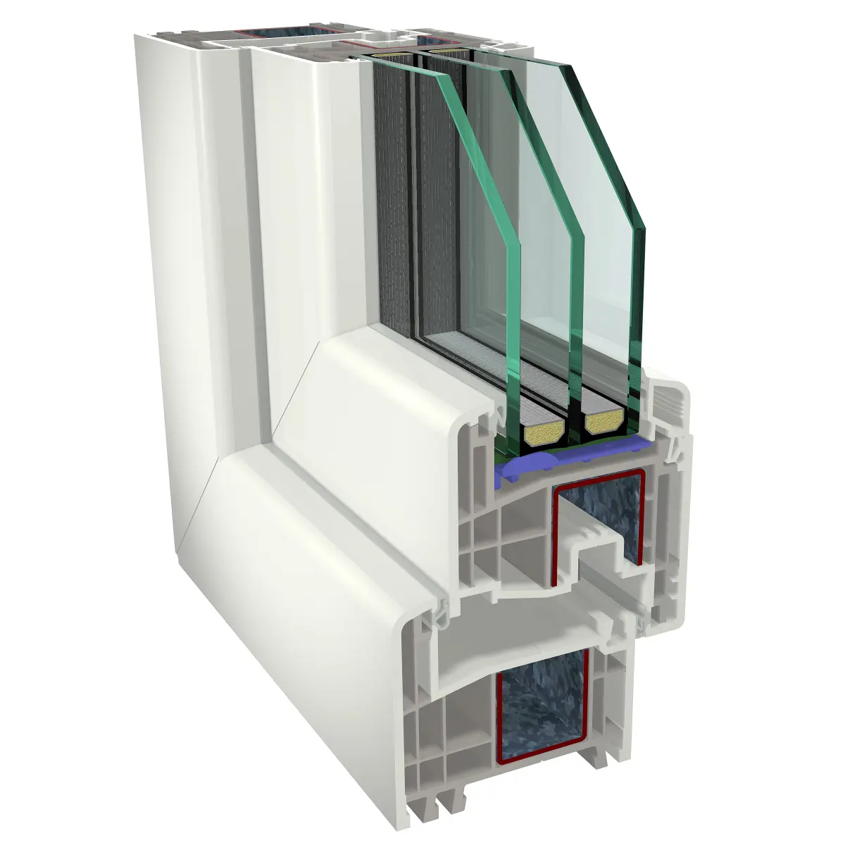• Os reforcos estáveis em aco asseguram uma elevada resistência a flexao e possibilitam a construcao de janelas maiores.
