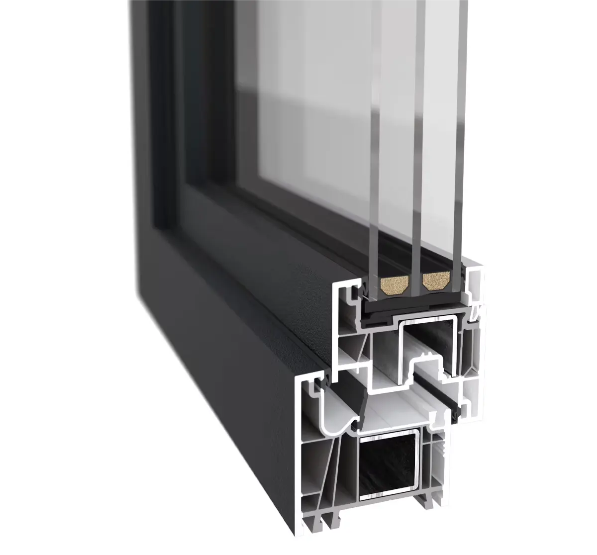 O uso padrão de reciclado no núcleo do perfil reduz a proporção de PVC virgem. Isso contribui para a conservação dos recursos fósseis e pode reduzir a pegada de CO₂ na produção do perfil de janela em comparação com perfis sem o uso de materiais reciclados.