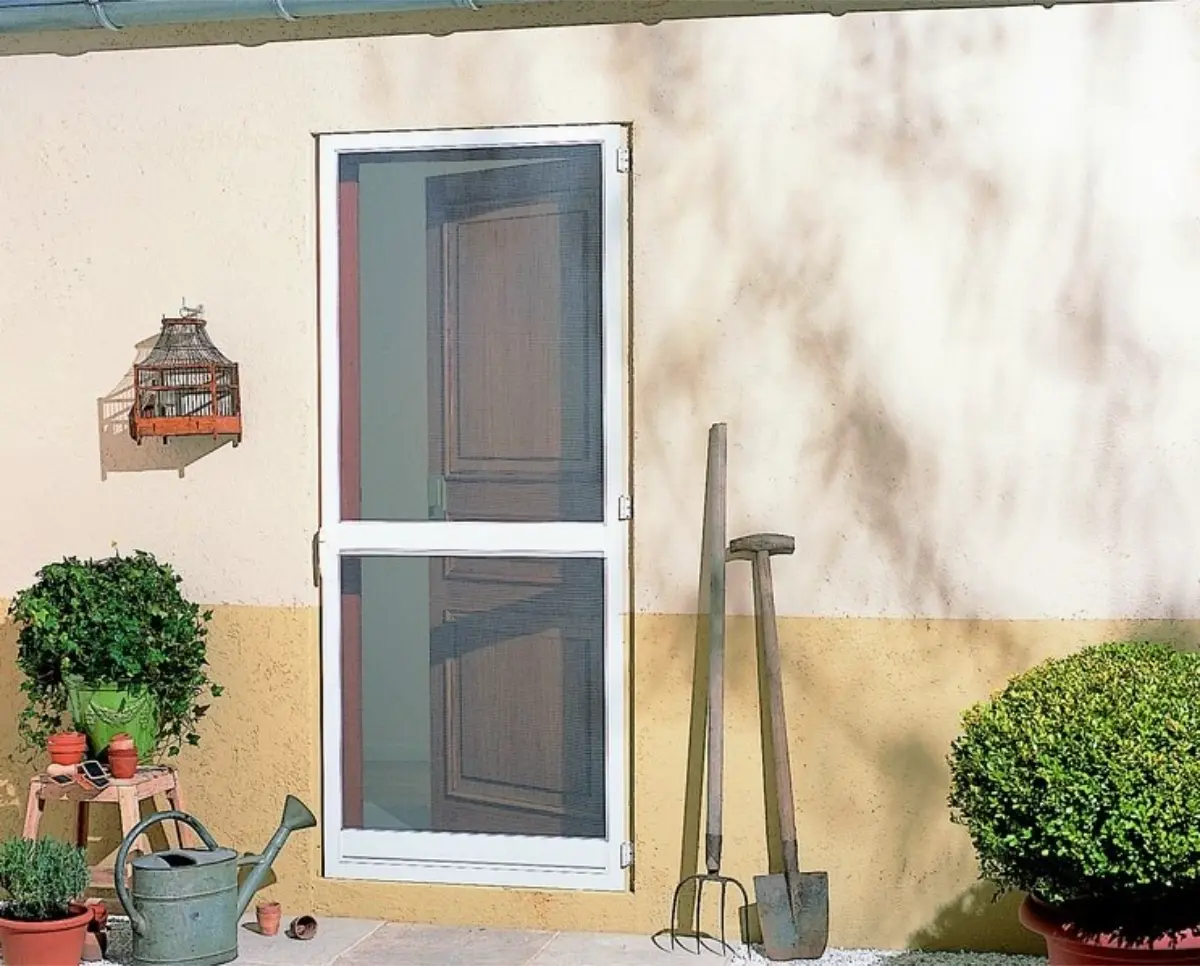 As redes mosquiteiras de porta abatível (também conhecidas como “porta americana”) são constituídas por um sistema de dobradiças que permite que sejam abertas e fechadas como uma porta normal.