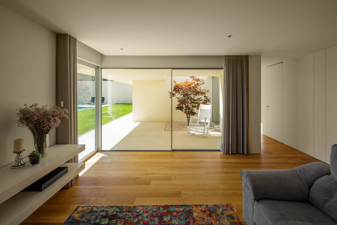 Projeto residencial onde o detalhe dita o conforto. A Alu-M interveio em todos os vãos com linhas modernas, caixilharia oculta e sistemas Cortizo, aplicando soluções técnicas à prova do tempo que elevam o design e a eficiência energética.