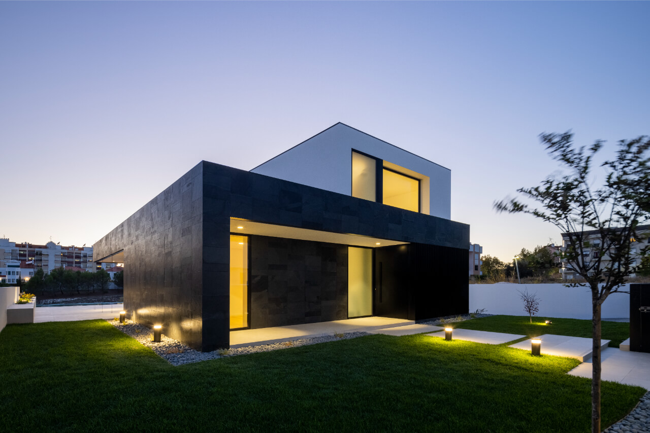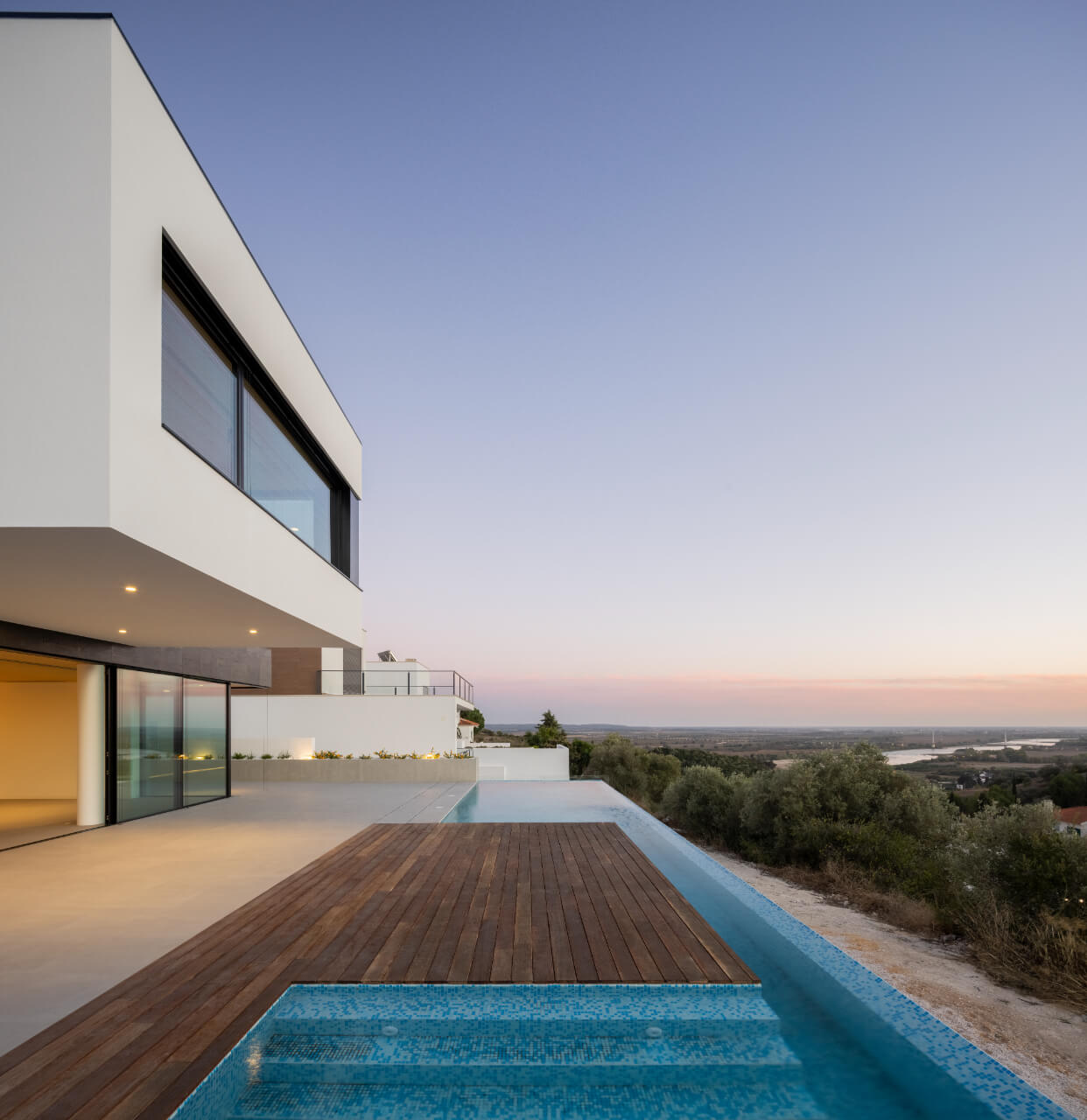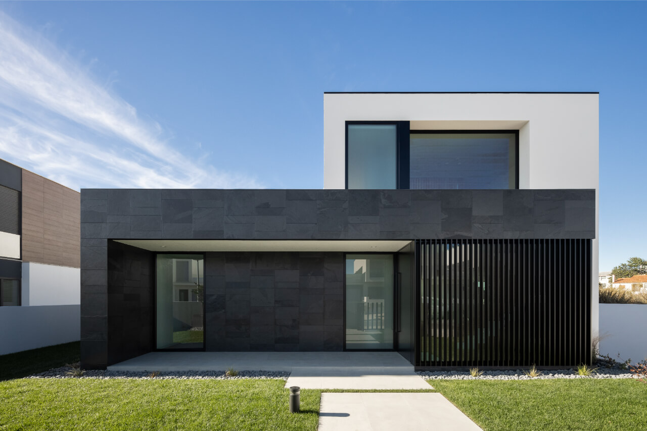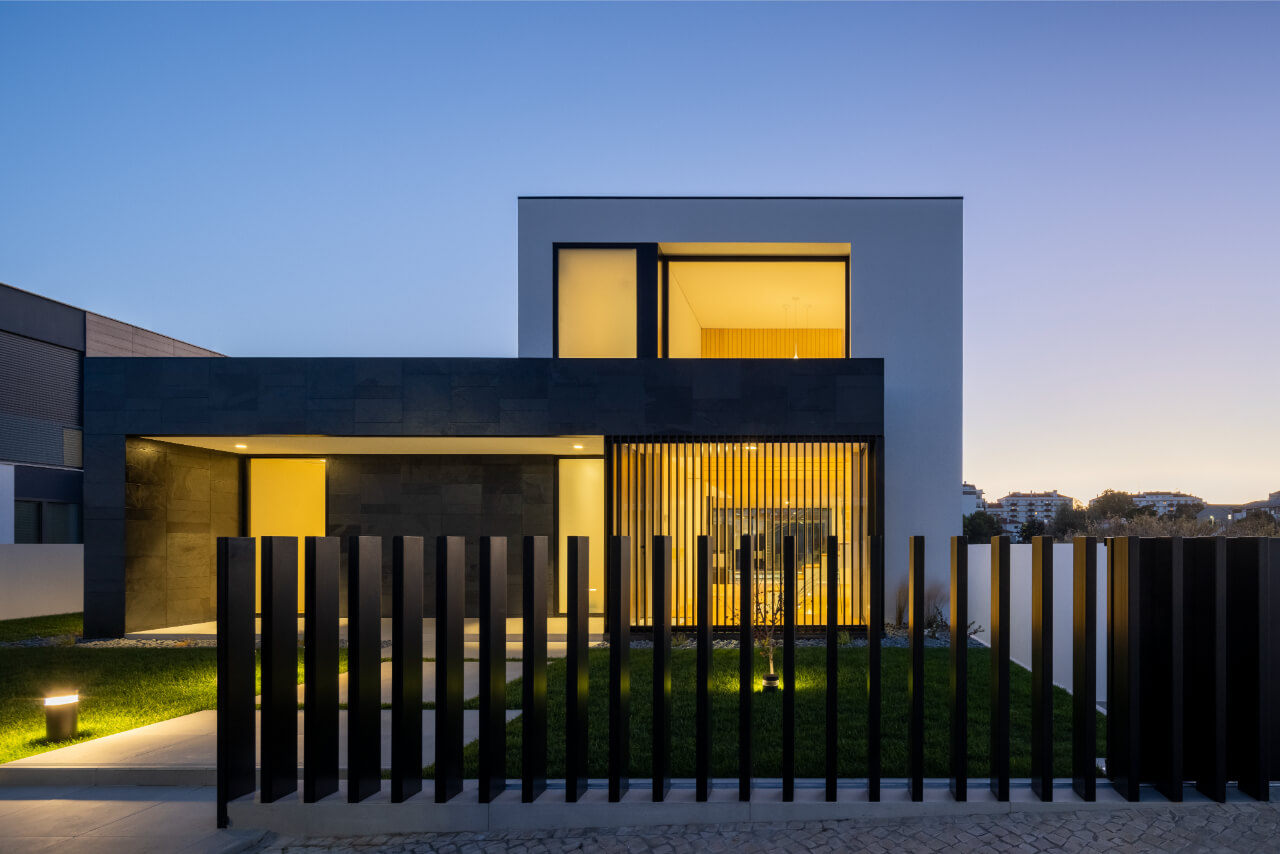 Nova construção residencial onde a Alu-M interveio em todos os vãos: janelas, portas, portadas, fixos e brisas solares. Os sistemas Cortizo e o vidro duplo Planitherm em alumínio anodizado natural combinam design moderno, desempenho técnico e eficiência energética.