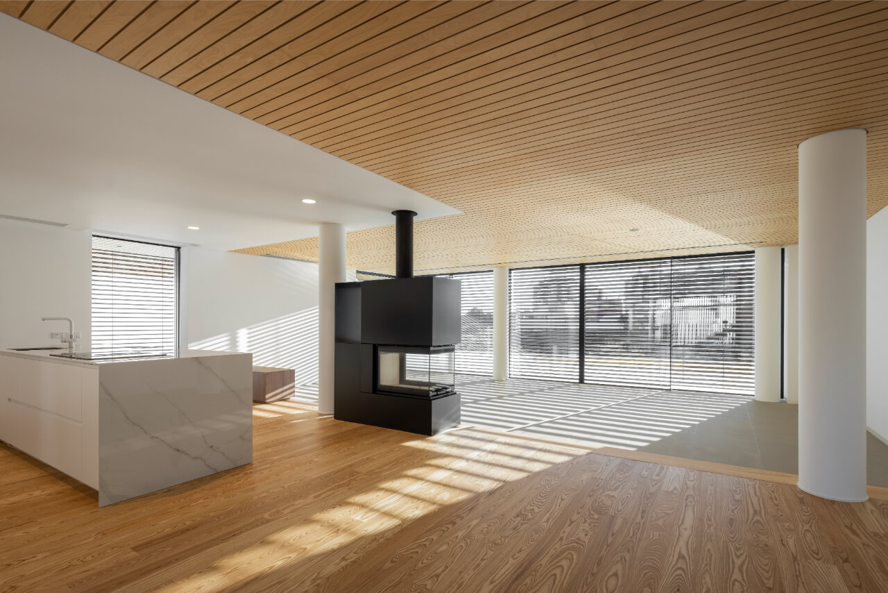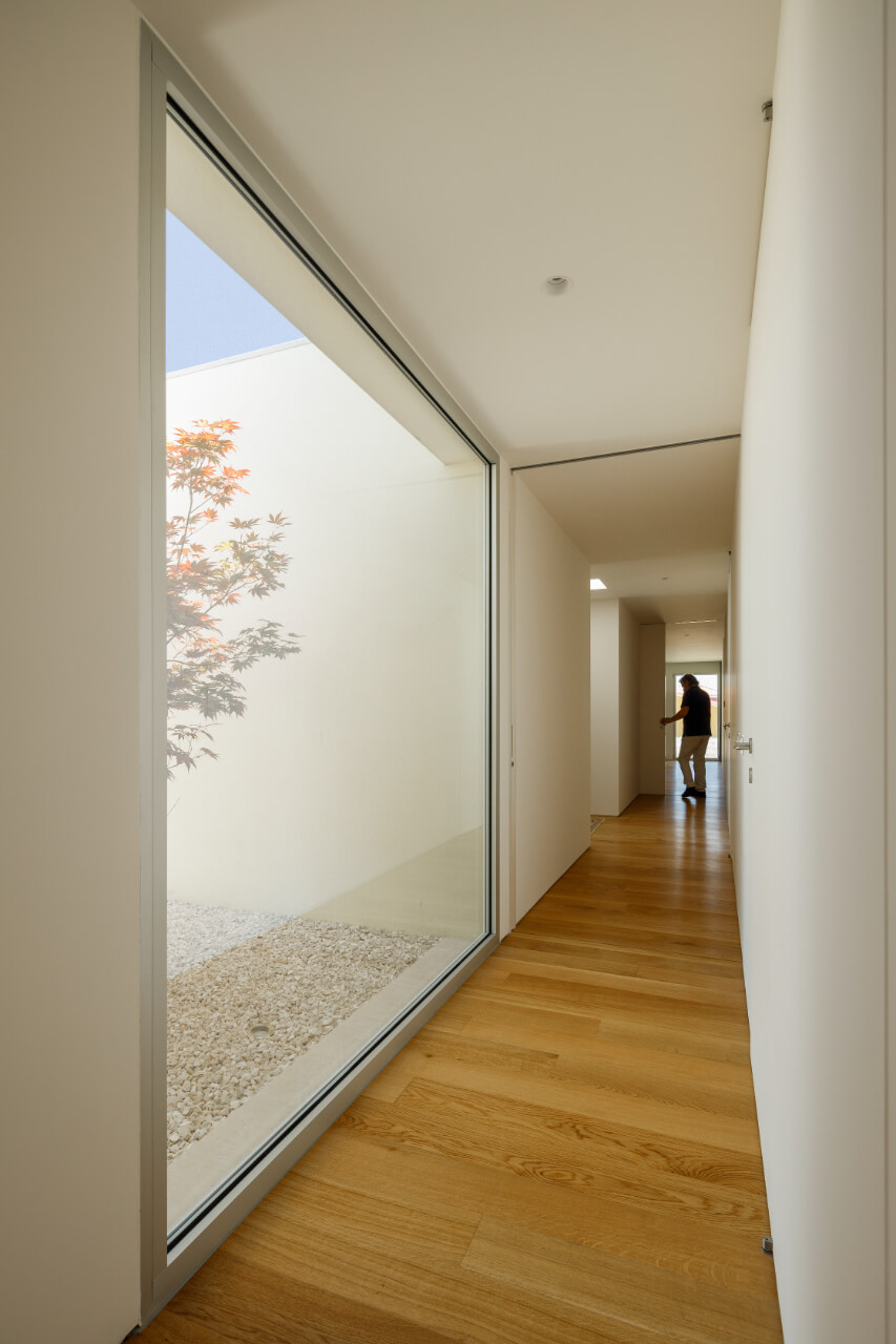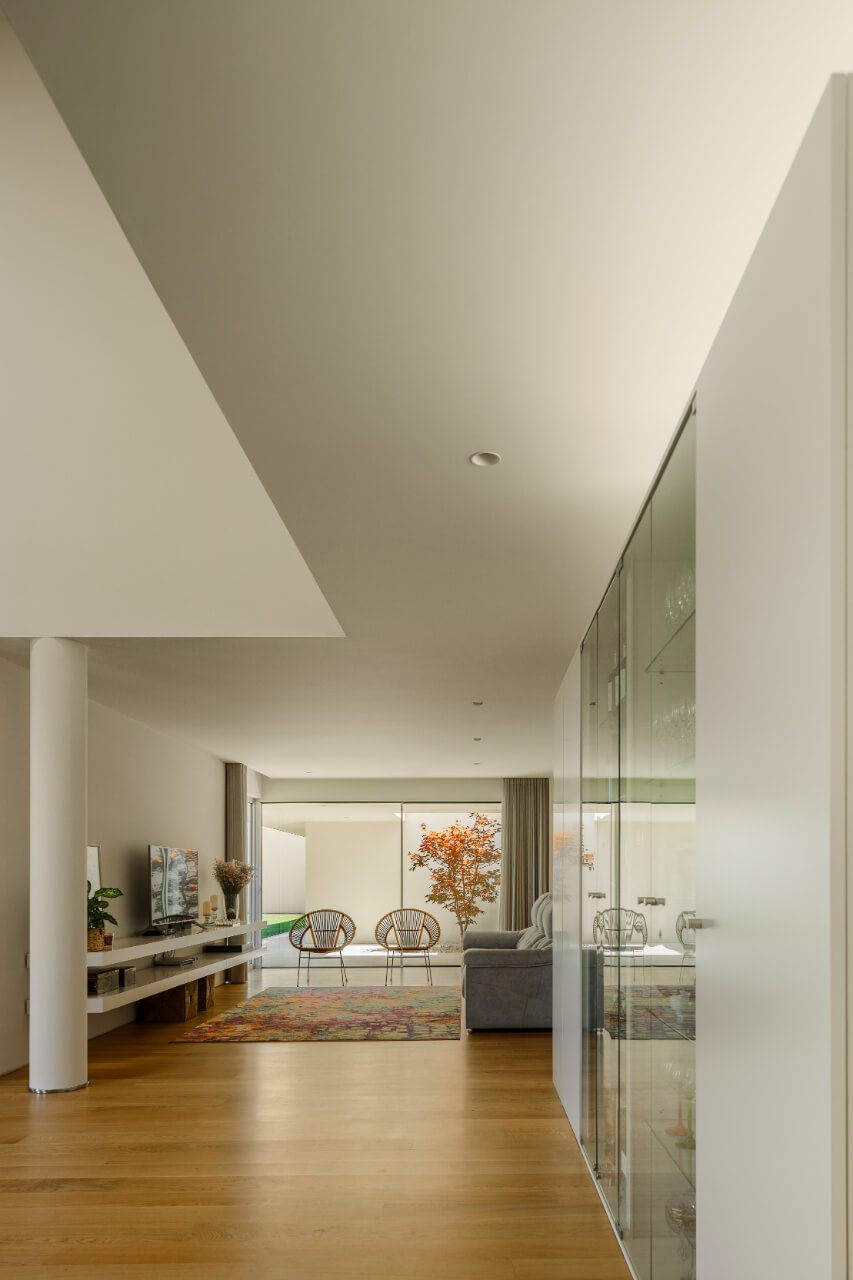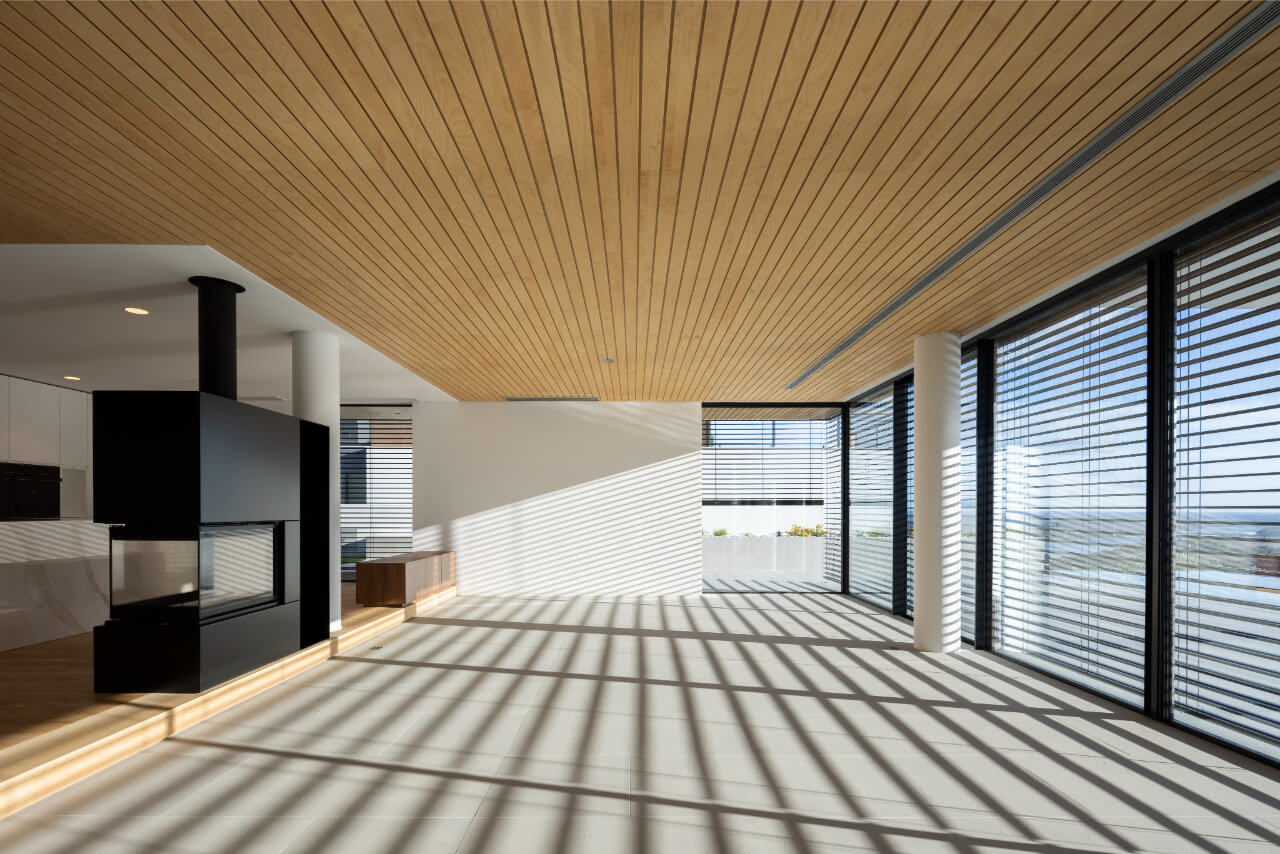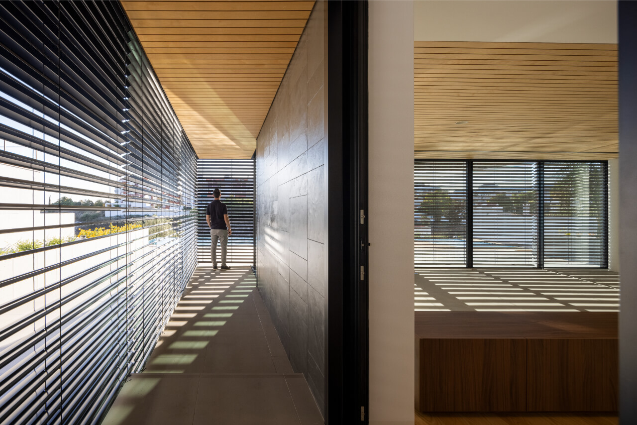 Nova construção residencial onde a Alu-M interveio em todos os vãos: janelas, portas, portadas, fixos e brisas solares. Os sistemas Cortizo e o vidro duplo Planitherm em alumínio anodizado natural combinam design moderno, desempenho técnico e eficiência energética.